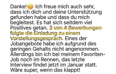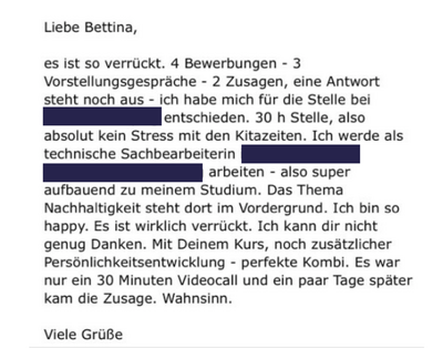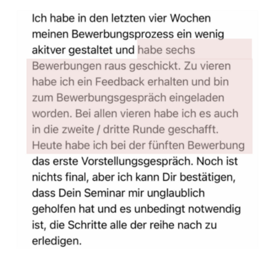 "Vielen Dank für den Hinweis Storytelling auch im Bewerbungsgespräch zu nutzen, um über sich selbst zu sprechen. Das bringt mich auf gute Ideen."